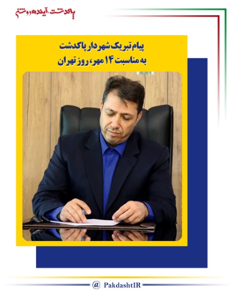 » پیمان شکرزاده شهردار پاکدشت در پیامی فرارسیدن 14 مهرماه، روز تهران را تبریک گفت.